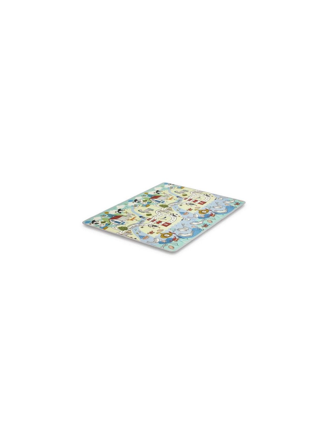 Un espacio versátil diseñado para el descanso, aprendizaje y juego de tu pequeño. Esta alfombra destaca por su diseño bilateral, ofreciendo un lado con un estampado llamativo que estimula la imaginación y anima a contar historias, y otro lado con un diseño geométrico y moderado que se integra fácilmente en cualquier espacio familiar.